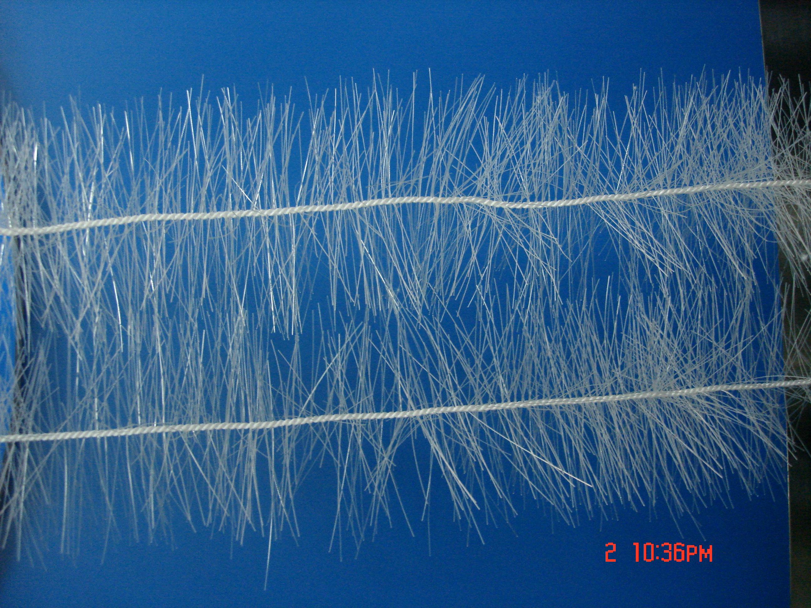 該填料篩選了聚烯烴類和聚酰胺中的幾種耐腐、耐溫、耐老化的品種,混合以親水、吸附、抗熱氧等助劑,采用拉絲,絲條制毛工藝,將絲條穿插固著在耐腐、高強(qiáng)度的中心繩上,絲條布置應(yīng)呈立體狀,絲條表面應(yīng)有微波紋,由于選材和工藝配方精良,剛?cè)徇m度,使絲條呈立體均勻排列輻射狀態(tài),制成了懸掛式立體彈性填料的單體,填料在區(qū)域內(nèi)能立體均勻舒展?jié)M布,使氣、水、生物膜得到充分混滲接觸交換,生物膜不僅能均勻地著床在每一根絲條上,保持良好的活性和空隙可變性,而且能在運(yùn)行過程中獲得愈來愈大的比表面積,又能進(jìn)行良好的代謝,這一特征與現(xiàn)象是國內(nèi)目前其他填料不可比擬的。